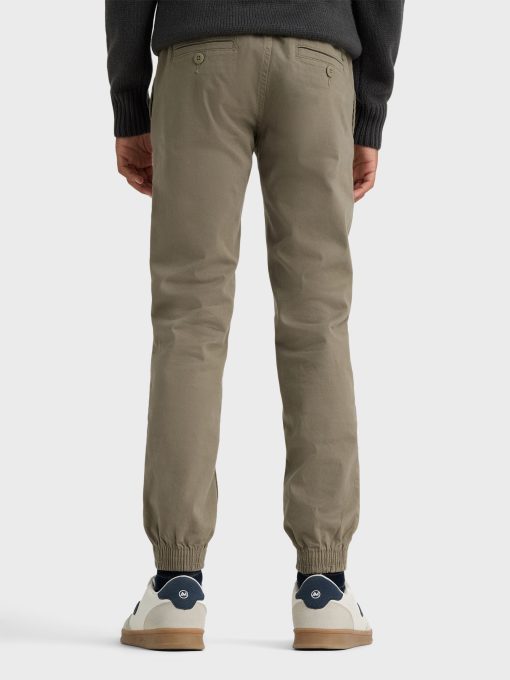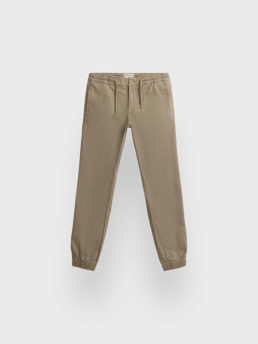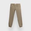 Pantalón con cinturilla elástica ajustable por cordones al tono y bajo con terminación de puño elástico. Cierre central mediante botón y cremallera, dos bolsillos en la parte delantera y dos en la parte trasera con detalle personalizado sobre uno de ellos.