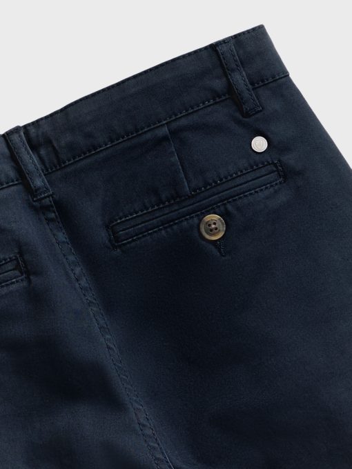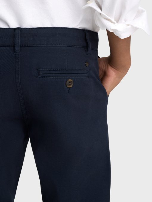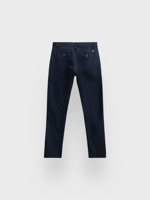 Pantalón estilo chino de corte regular fit. Cuenta con cierre central mediante botón y cremallera, dos bolsillos en el frontal y dos en la parte trasera con detalle personalizado sobre uno de ellos.