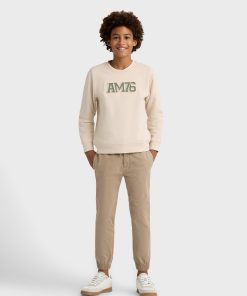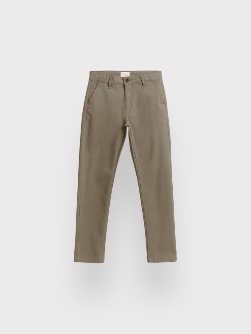 Pantalón estilo chino de corte regular fit. Cuenta con cierre central mediante botón y cremallera, dos bolsillos en el frontal y dos en la parte trasera con detalle personalizado sobre uno de ellos.