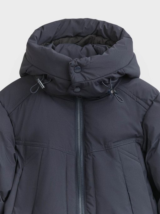 Parka acolchada con cuello subido y gorro desmontable. Cierre central mediante cremallera, dos bolsillos muy amplios en el frontal y puños con interior en ajuste elástico. Parche engomado en una de las mangas. Bolsillos en su interior. Cremalleras termoselladas.