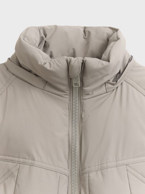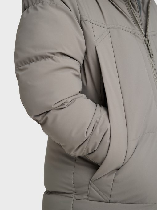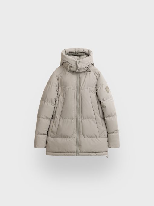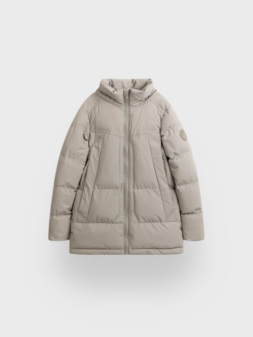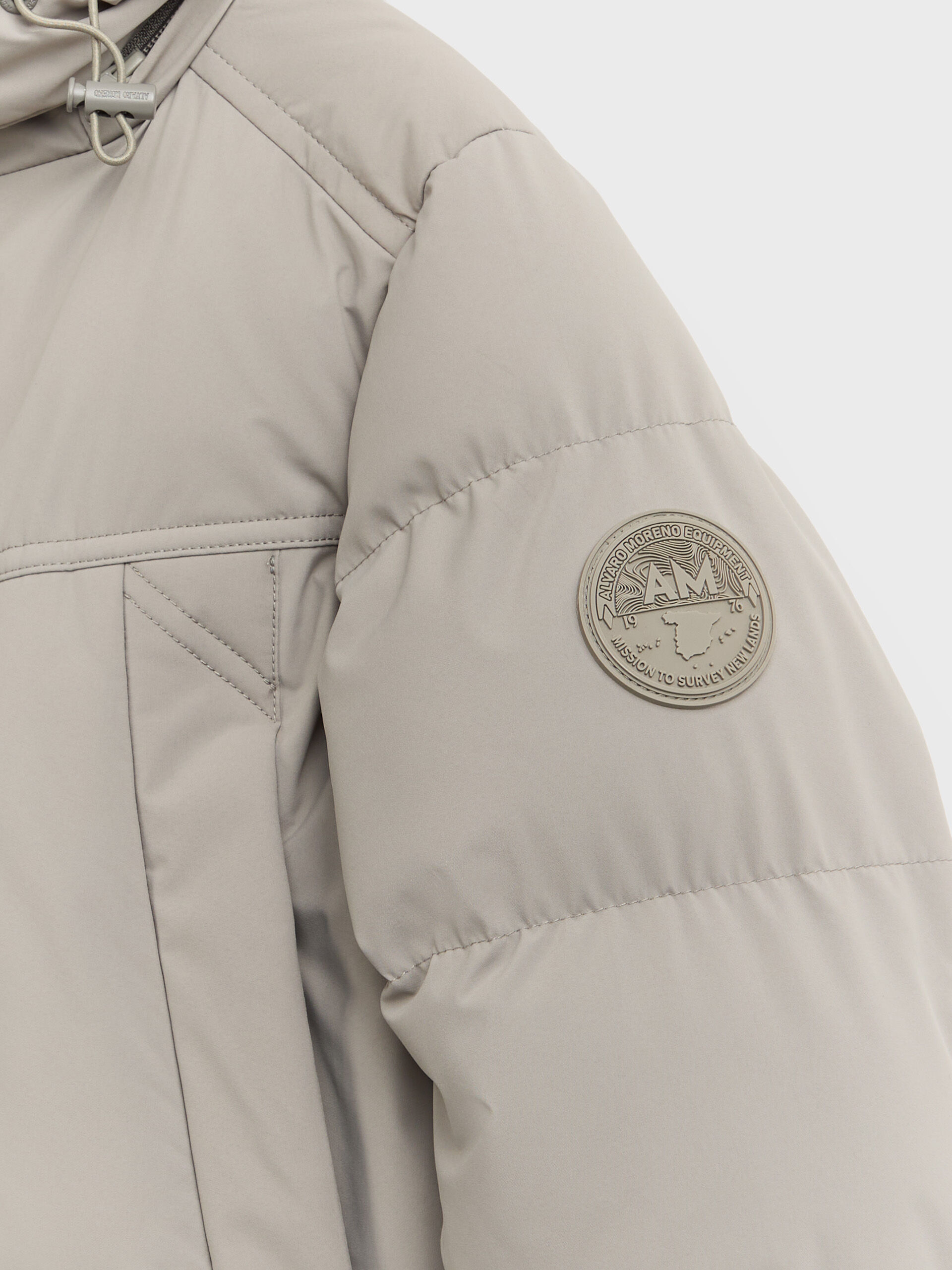 Parka acolchada con cuello subido y gorro desmontable. Cierre central mediante cremallera, dos bolsillos muy amplios en el frontal y puños con interior en ajuste elástico. Parche engomado en una de las mangas. Bolsillos en su interior. Cremalleras termoselladas.