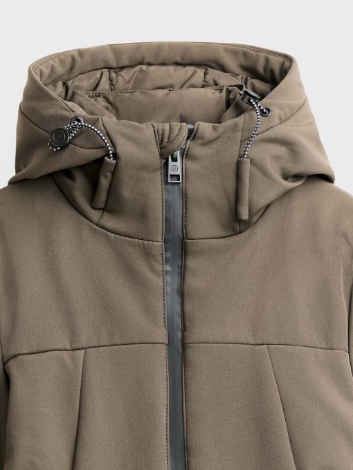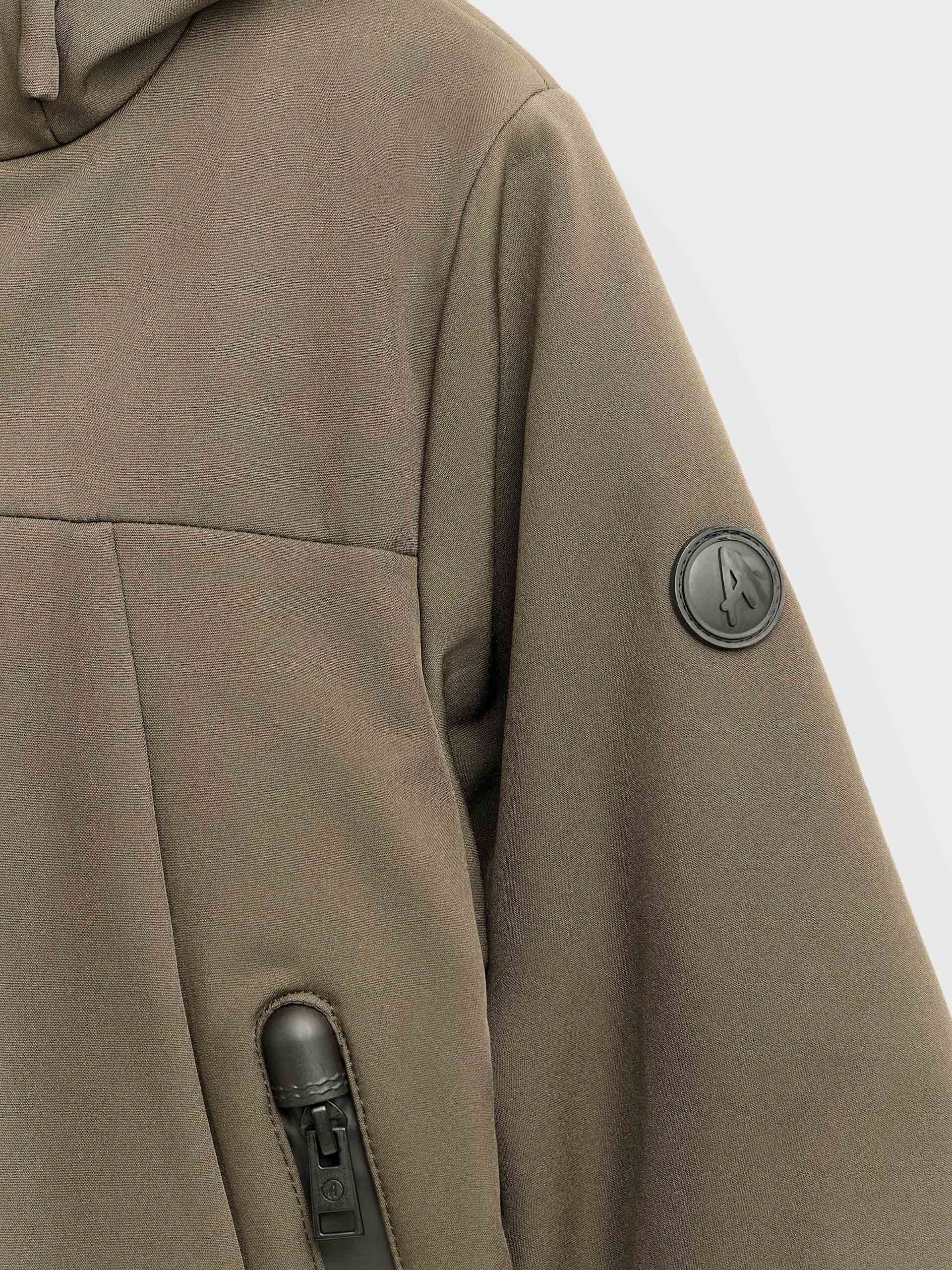 Parka acolchada con cuello subido y gorro ajustable. Cierre central mediante doble cremallera, dos bolsillos amplios en la cintura y manga larga con puños ajustables. Parche engomado en una de las mangas. Bolsillos en su interior. Cremalleras termoselladas.