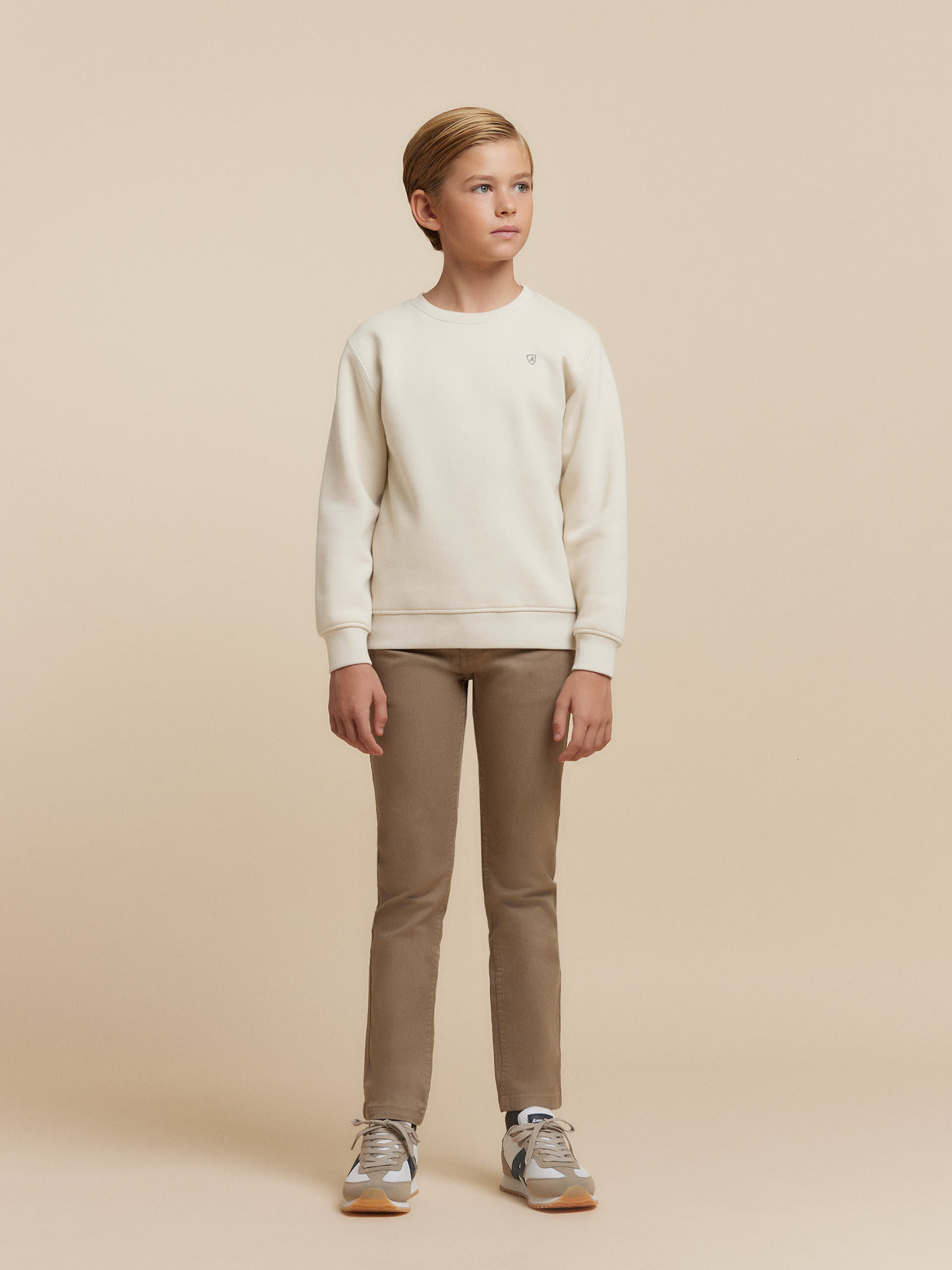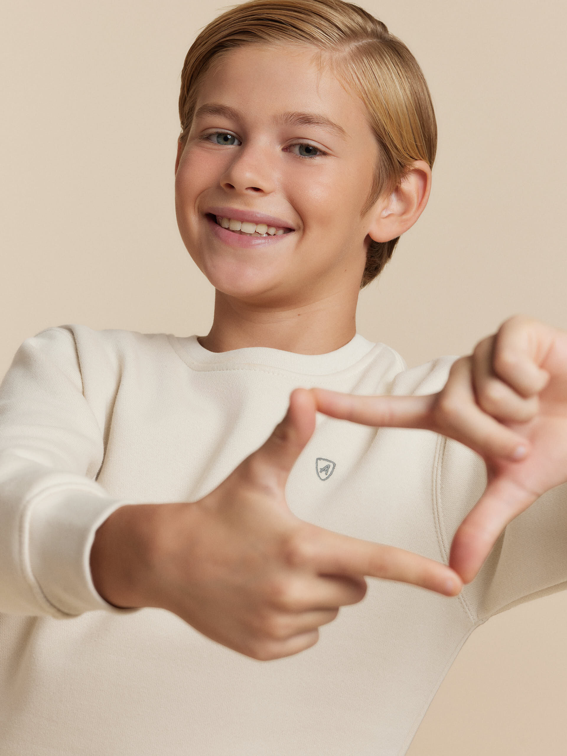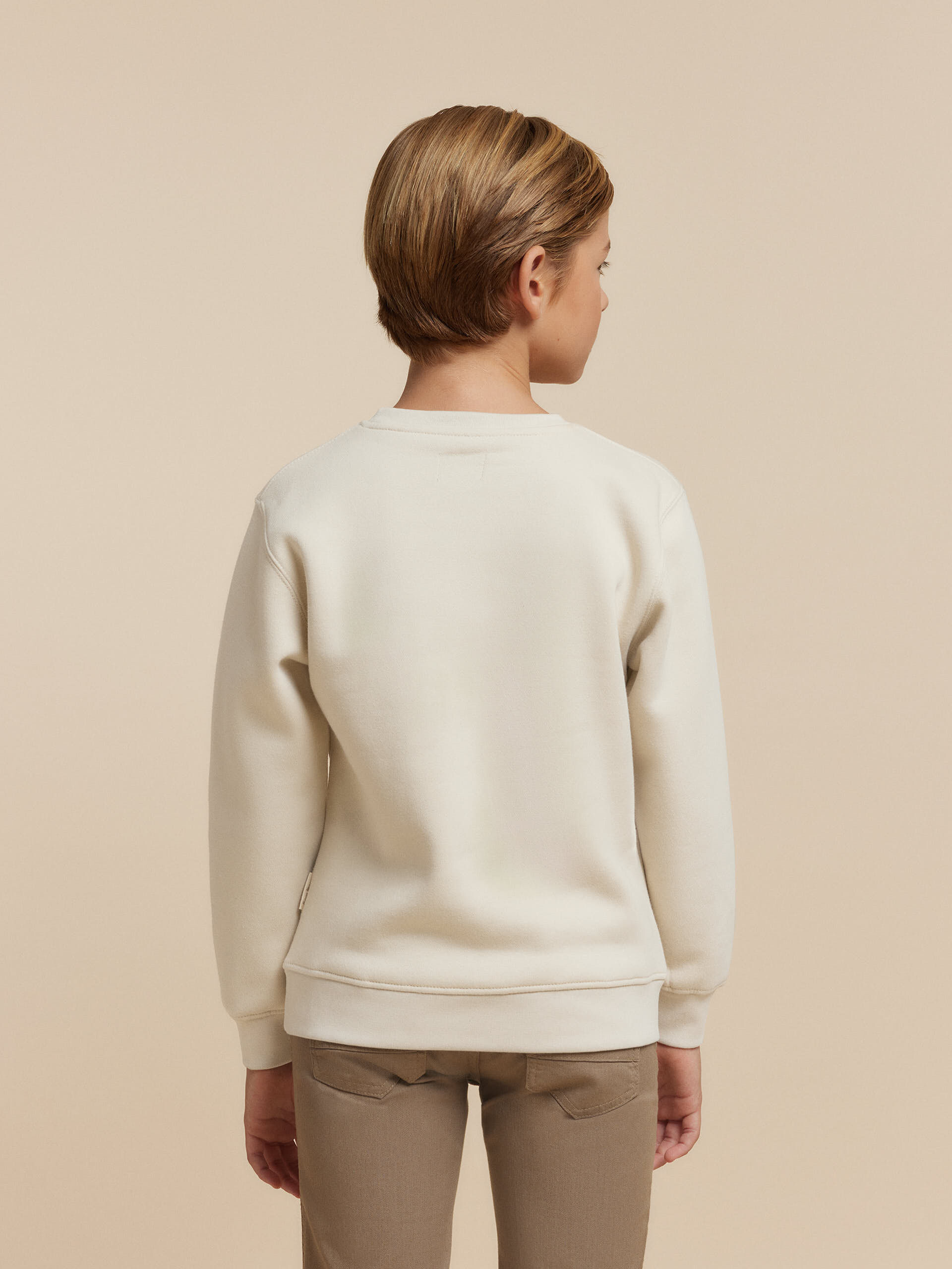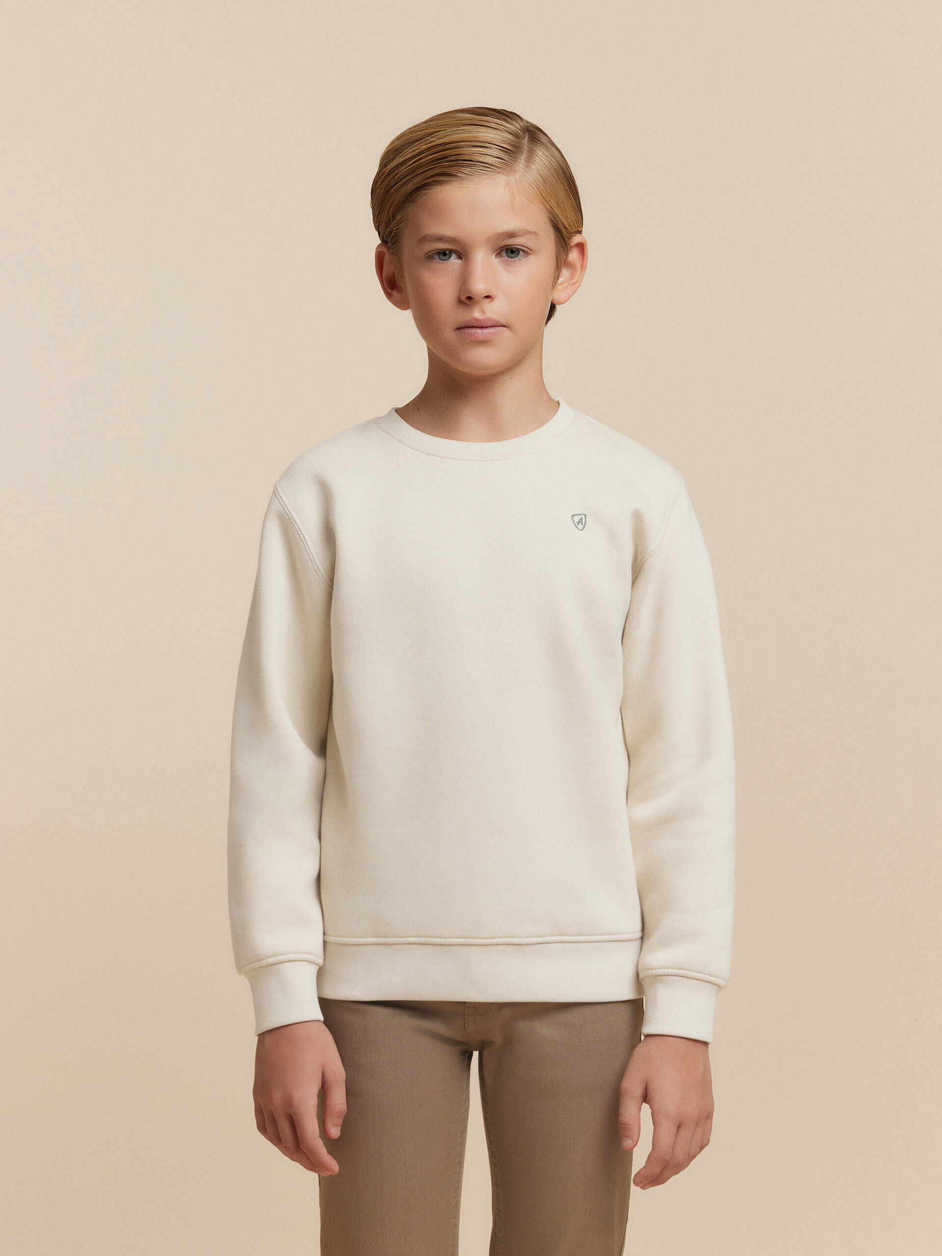 Sudadera lisa con cuello redondo, manga larga y logo de la marca grabado en el frontal al tono. Puños y bajo en acabado elástico. Etiqueta canvas en el lateral. Corte regular fit.