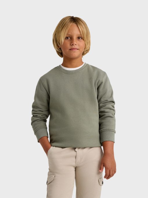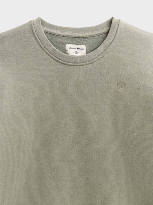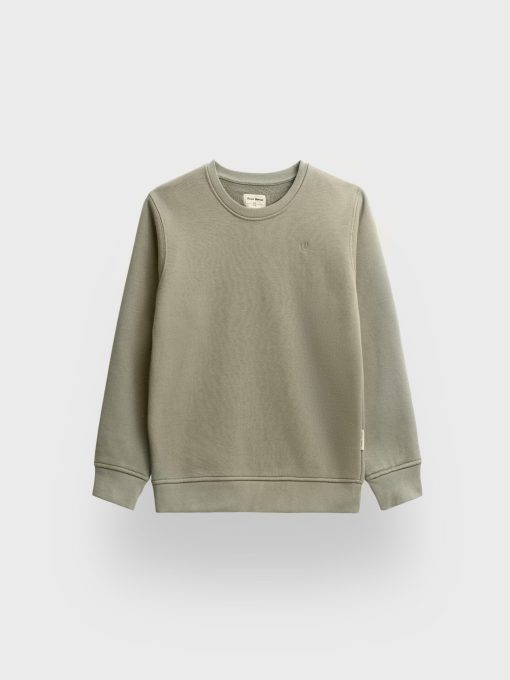Sudadera lisa de corte regular fit. Cuenta con cuello redondo, manga larga y logo de la marca grabado en el frontal. Etiqueta canvas en el lateral. Cuello, puños y bajo en punto elástico.