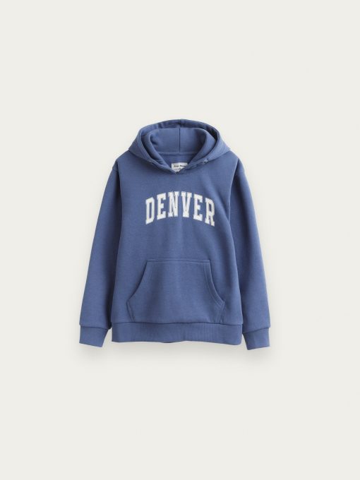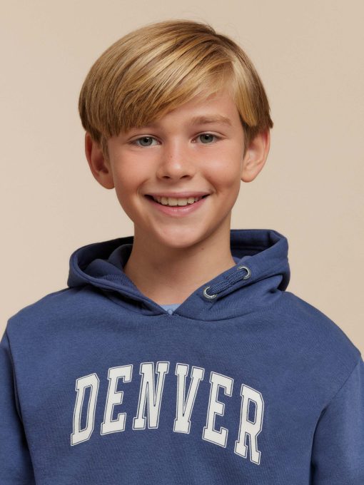 Sudadera con gorro, manga larga y estampación personalizada en el frontal. Bolsillo estilo canguro en la cintura. Corte regular fit.