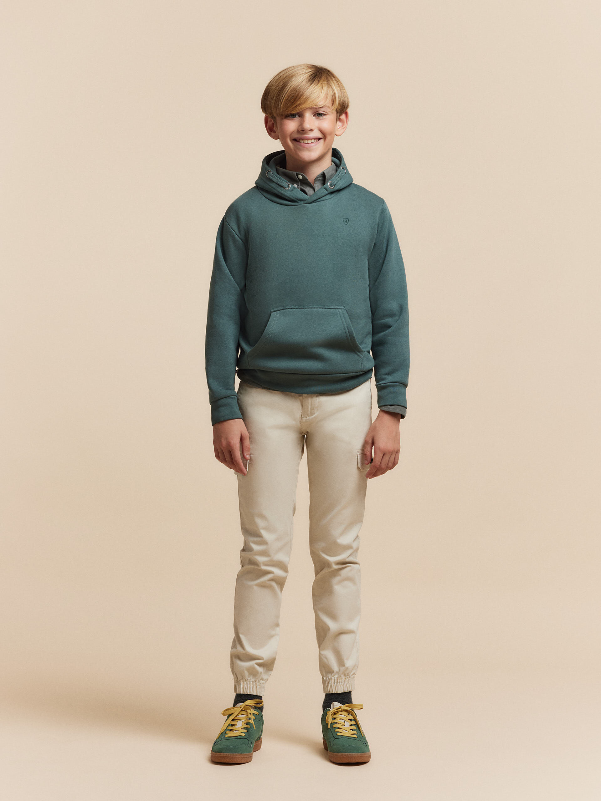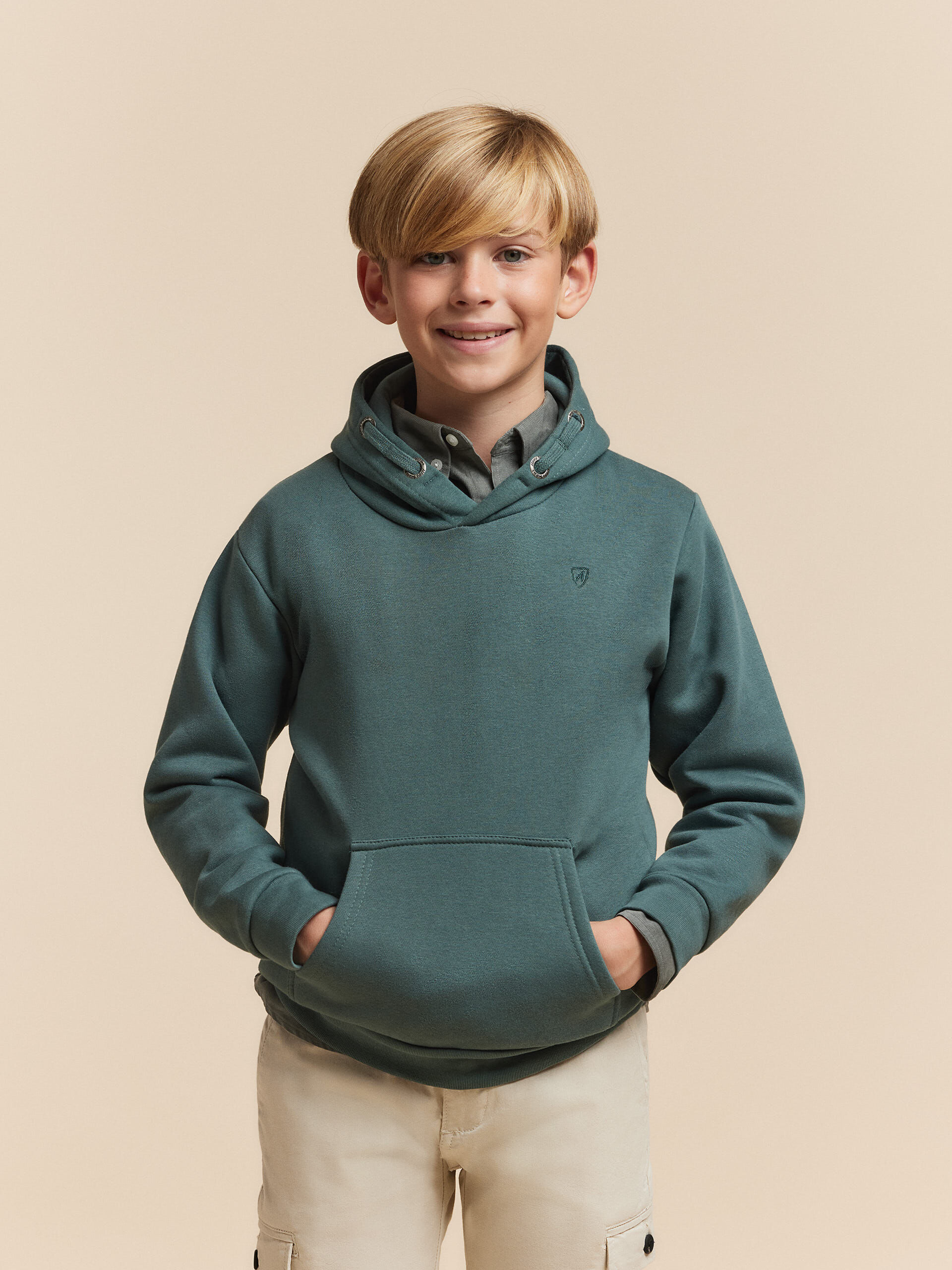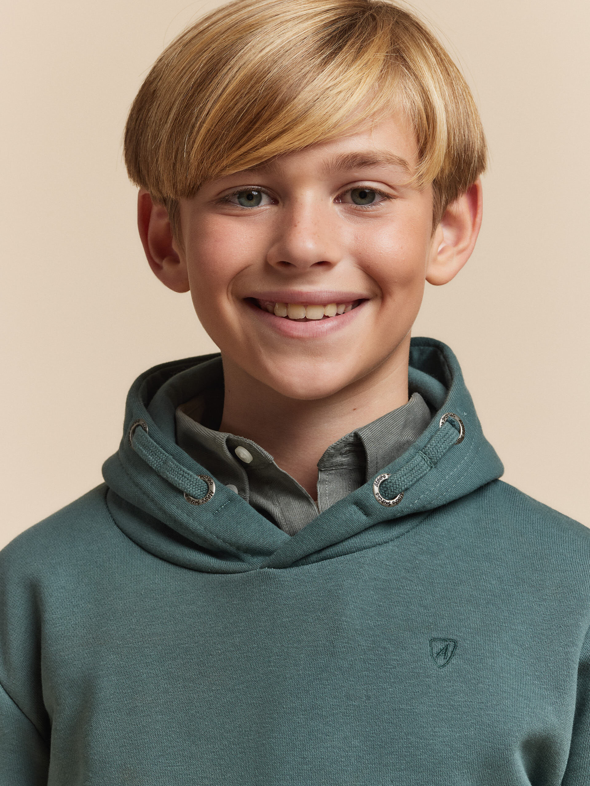 Sudadera confeccionada en algodón con capucha. Cuenta con manga larga, bolsillo estilo canguro en el frontal y logro da la marca grabado al tono en el pecho. Corte regular fit.