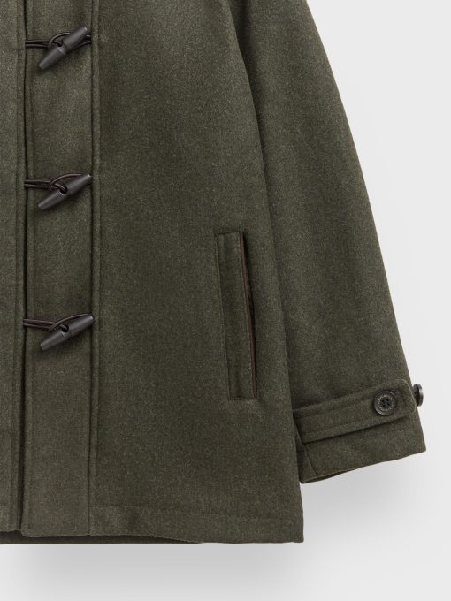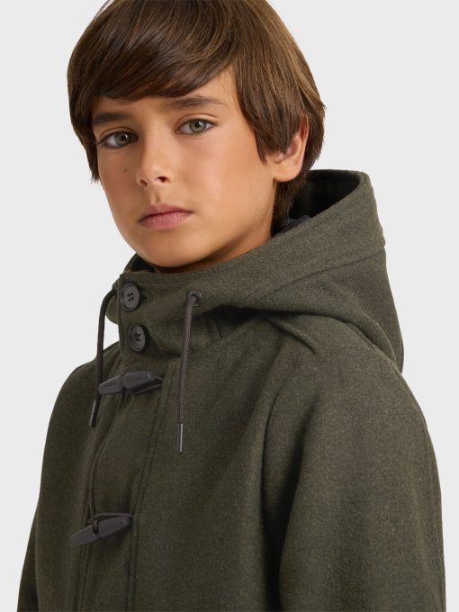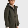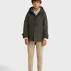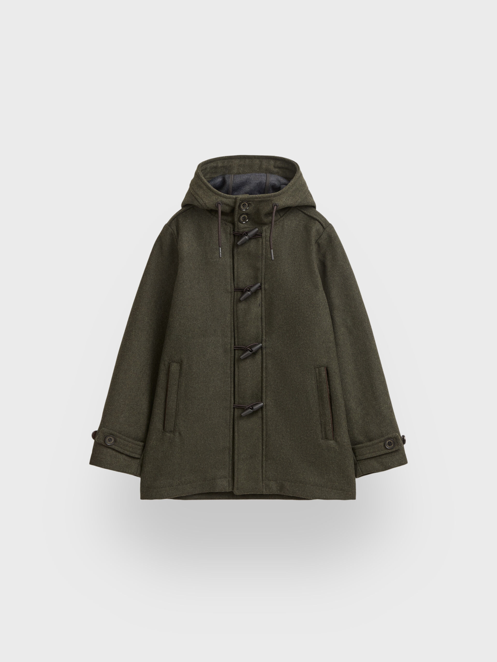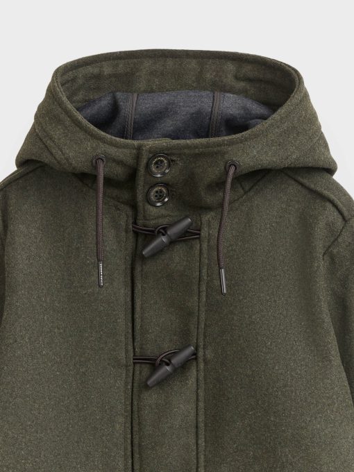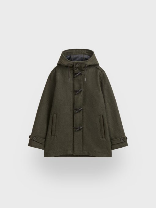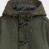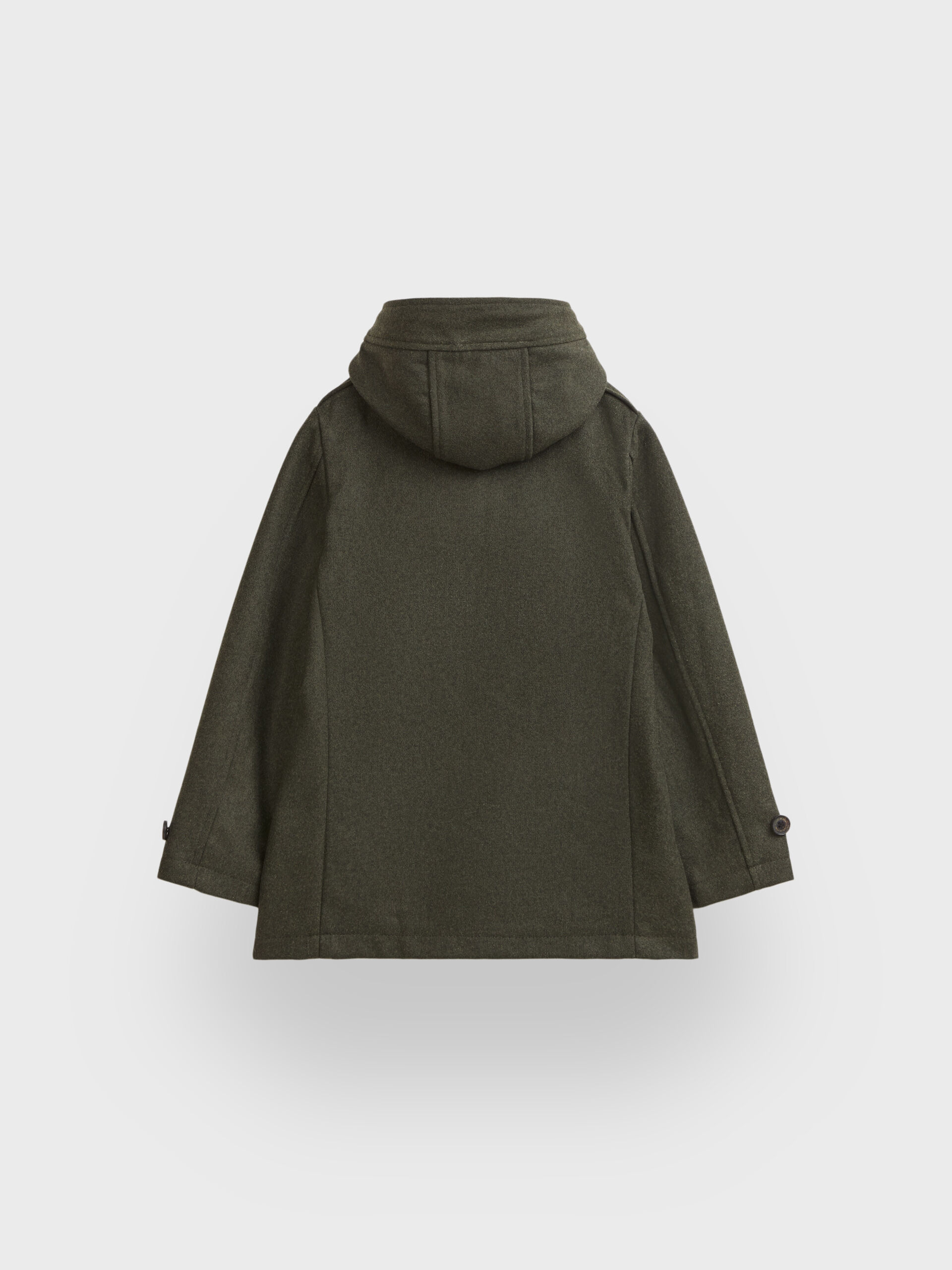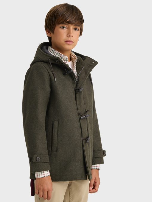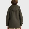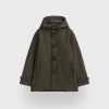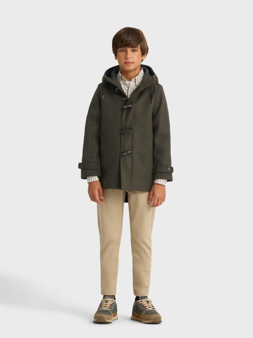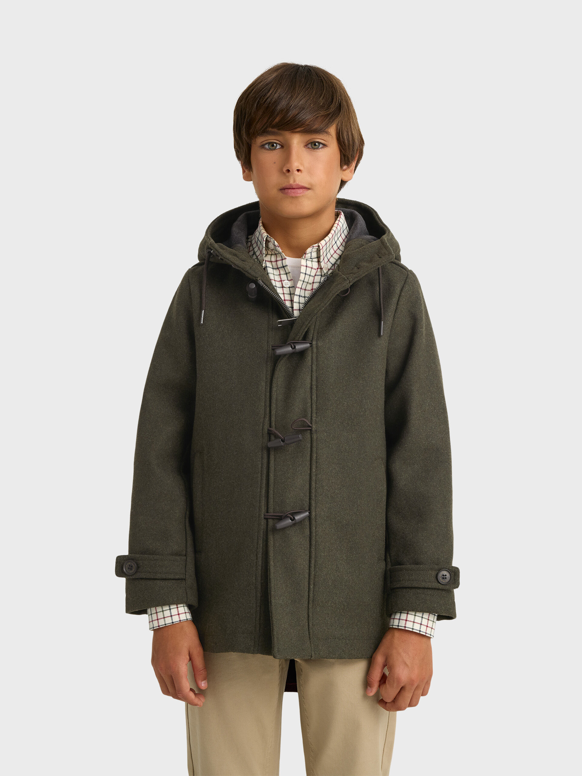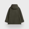 Trenca con capucha ajustable y cierre central mediante cremallera oculta por tapeta de alamares. Dos bolsillos a la altura de la cintura, manga larga con puños ajustables y corte regular fit.